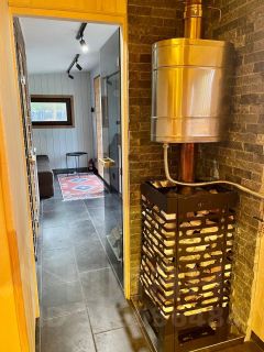 - Для удобства есть туалет и душ, а также колобок с холодной водой, чтобы окатить ею распаренное тело,