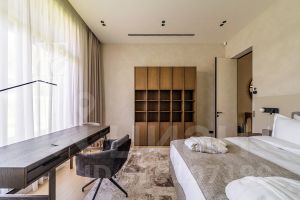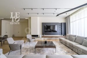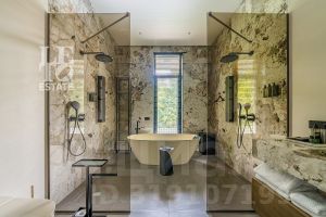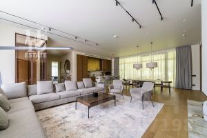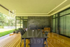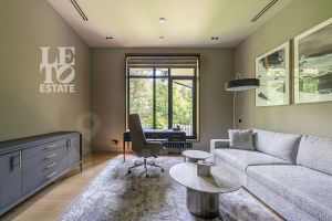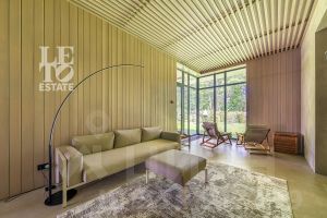 Внутренняя отделка выполнена исключительно из качественных и дорогостоящих материалов. В интерьерах использованы теплые приглушенные тона, дом полностью укомплектован всей необходимой мебелью и техникой ведущих мировых производителей.