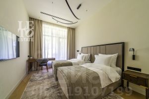 Планировка: прихожая с гардеробной, гостиная, кухня-столовая с выходом на открытую террасу, мастер-спальня с собственной ванной комнатой и гардеробной, кабинет, две спальни с собственной ванной комнатой и гардеробной, гостевой санузел, гостевая спальня, спа-комплекс с сауной, душевой и санузлом, комната отдыха с выходом на открытую террасу, постирочная.