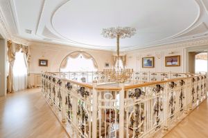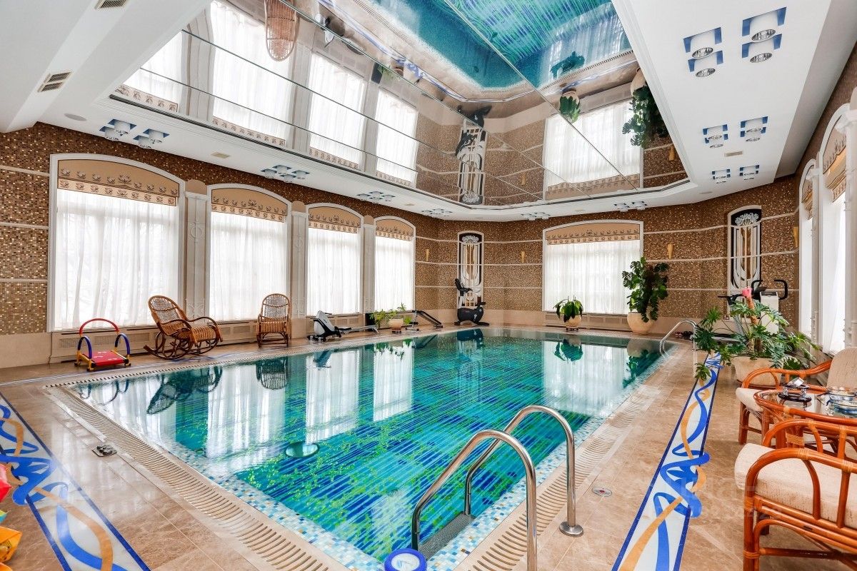 На территории дома расположены сауна и бассейн, дарящие возможность восстановить силы и расслабиться после насыщенного дня. Для поддержания физической формы предусмотрен современный спортзал. Принимать гостей или собираться всей семьей можно в просторном зале с камином, являющемся сердцем дома.