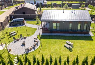 - костровая зона с подсветкой, удобными креслами и дизайнерскими столиками