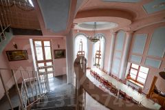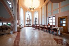 -на 1 этаже расположен зал 80 м2 в два света, идеально подходящий для банкета до 35-40 человек, в зале большой мраморный камин, домашний кинотеатр, караоке, спутниковое телевидение