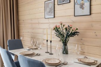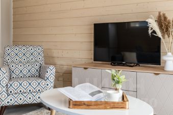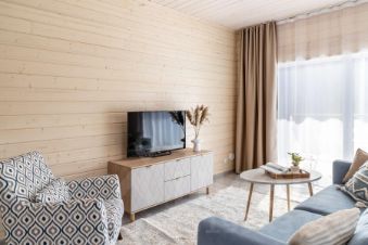 Одноэтажный дом, имеющий 2 спальни (первая с двухспальной кроватью и вторая с двумя раздельными кроватями), а также уютная кухня-гостиная отлично подойдет для размещения семьи с детьми.