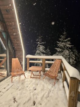 Предлагаем Вам отдохнуть в замечательном абсолютно новом панорамном домике с террасой в окружении леса и насладиться горячей купелью фурако на дровах