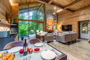 Благодаря расположению в лесу, шале полностью изолировано от посторонних глаз — никаких заборов, но полная приватность.