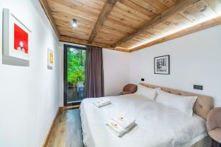Дом окружён густым лесом и граничит с большим лесным массивом. Всё пространство вокруг — это природный заповедник, тишина и свежий воздух. До реки Яхрома всего 100 метров — идеальное место для прогулок, романтических закатов или утренней медитации.