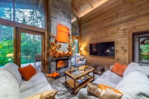 • Гостиная с камином и ТВ 65 — идеально подходит для просмотра фильмов, игр или вечеров у костра.