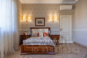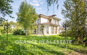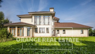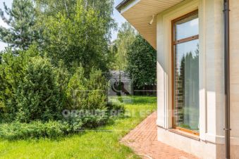 На стенах эксклюзивные шелковые обои, венецианская штукатурка, пол - мрамор и наборный паркет. Панорамное остекление, витражи. По периметру дома - видеонаблюдение. На участке высажены взрослые деревья, имеется навес для автомобиля.