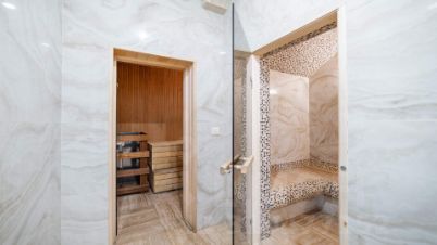 Стильный особняк у леса в 21 км от МКАД с банкетным залом, панорамным бассейном, сауной, хаммамом и ночным клубом.