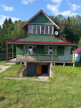 Уютный деревянный дом у леса с прекрасным видом. Круглогодичное проживание, автономное газоснабжение + камин. Одна спальня, кухня, гостиная, с/у в доме. Второй этаж летний, с балконом. Артезианская скважина.
