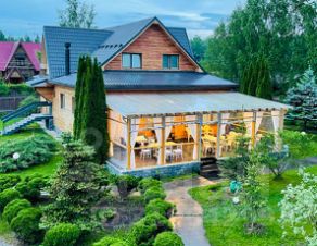 Дом площадью 450 м2 с 7 отдельными спальнями и летней верандой находится в деревне Лисавино в 49 км от МКАД по Новорижскому шоссе.