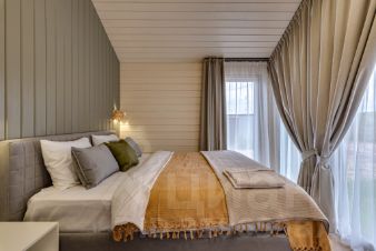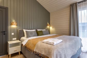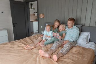 Одна спальня с двуспальной кроватью 160-200, вторая спальня с двумя односпальными кроватями, которые с лёгкостью трансформируются с двуспальную, третья спальня с удобным диванчиком 160-200.