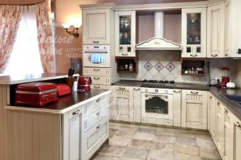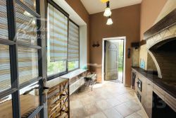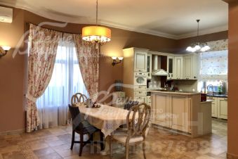 Мебель, оборудование: итальянский кухонный гарнитур молочно-кремового цвета с латунно-керамическими ручками, стилизованный под старину, со столешницей из натурального дерева, с островом и барной стойкой. Встроенная бытовая техника: газовая варочная панель, духовой шкаф, микроволновка, вытяжка - вся техника SMEG (Италия), холодильник BOSCH (дополнительный холодильник в кладовой Liebherr). Стиральная машина Miele. Дом полностью укомплектован стильной мебелью: столики, стулья, комоды, шкафы. Дизайнерские шторы из натуральных тканей. Кованые элементы ограждения на 2-ом этаже с деревянными перилами..