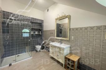 Описание внутренней отделки: выполнена стильная отделка в стиле Прованс. Белые или светлые стены (где покраска), также дорогостоящие обои в спальнях. Полы - керамогранит натуральных цветов с подогревом, а в жилых комнатах - массив ценных пород дерева. На мансардном этаже - на потолках присутствуют фактурные деревянные балки и обшивка из красивого дерева. Красивейшие санузлы с разнообразной плиткой с декором. Двери дубовые цвета незабудки (василькового), производства Франция. Подоконники и камин отделаны мрамором. Использованы только экологичные натуральные материалы..