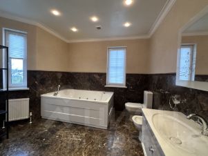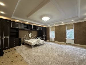 Охраняемый коттеджный поселок Княжье Озеро, дом 400 кв.м, 2 уровня, 1 эт: холл с высотой потолков 8 метров, гостиная с камином, кухня, просторная столовая, кабинет (может использоваться как дополнительная спальня), терраса / зимний сад, библиотека/домашний кинотеатр (потенциально ещё одна спальня), гардеробная, постирочная, гостевой с/у. 2 эт: главная спальня с просторной гардеробной комнатой и с/у. 3 спальни, игровая комната, с/у, Дом окружён ухоженным садом площадью 20 соток, с ландшафтным дизайном, дренажем, автополивом. На участке расположены дополнительные строения: грот/погреб, гараж и навес на 3 авто; квартира для персонала площадью 75 кв.м, баня. Дом находится в самой престижной части посёлка, в Вип-зоне, где расположены самые дорогие дома. В поселке: школа, детский сад, детские центы, зоопарк, шиномонтаж, мойка, озеро, ресторан, торговый центр, фитнес