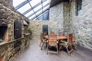 БАРБЕКЮ: мангальная зона для приготовления барбекю и шашлыка на дровах. Коптильная. Печь для приготовления горячих блюд. Рабочая зона с коммуникациями. Панорамное раздвижное окно во двор. Обеденный стол на 12 персон, кресла. Качественная аудиосистема.