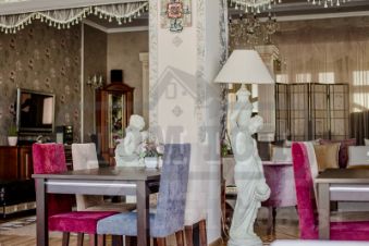 В ДОМЕ: 3 этажа, 9 спален, 25 спальных мест. Просторная гостиная - банкетный зал на 35 персон с панорамным остеклением. Кинозал. Каминный зал. На цокольном этаже сауна, конференц-зал на 30 мест. Спортзал, теннисный стол. Холл с рабочим кабинетом. Детская игровая.