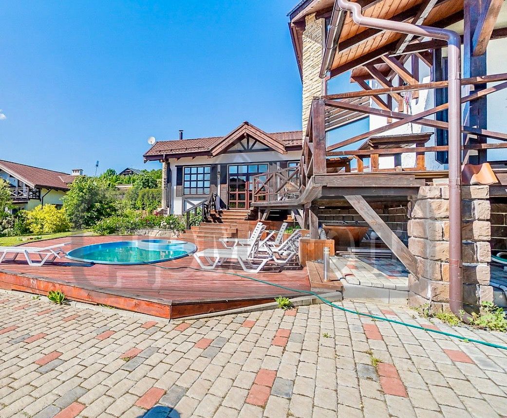 УЧАСТОК: 15 соток. Ухоженная зеленая территория. Высажены деревья, кустарники и цветы. Дорожки облагорожены. Мангальная зона, беседка. Парковка на 8 автомобилей. Уличный подогреваемый бассейн.