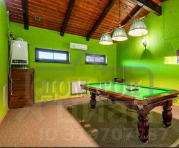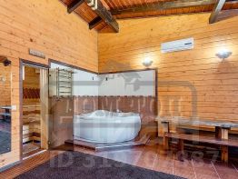 БАНЯ: отдельно стоящая русская баня на дровах. Комната отдыха, шезлонги, джакузи, бильярдная, телевизор, DJ-пульт.