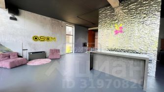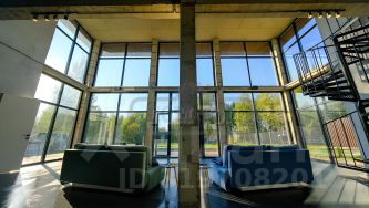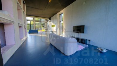 Просторная гостиная с высокими потолками (7 метров) и панорамными окнами.