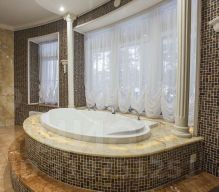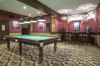 На цокольном этаже: большая гостиная с бильярдом (русский, 8ф), барная стойка, с/у, лаундж-зона с диванчиками. На 2-м и 3-м этажах спальни. Есть спальня для молодоженов с джакузи.