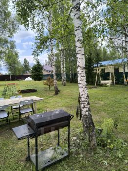 Дополнительно на участке есть большие качели, гамак, костровая зона, детская площадка с песочницей и качелей, мангал и стол.