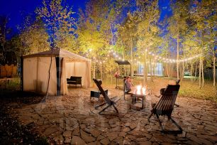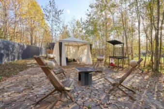На участке есть отдельная баня на дровах с панорамным видом из парной.