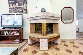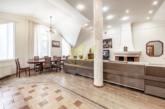гостиная с кухней, банкетной зоной (раскладной угловой большой диван, камин)