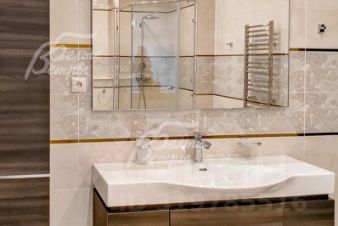 Описание внутренней отделки: выполнена дизайнерская отделка в современном стиле минимализма: внутренние стены - ГКЛ, покраска/обои; полы: керамогранит/паркетная доска, водный тёплый пол в помещениях с плиткой; потолки: гкл+покраска. Установлена сантехника Kohler, смесители Grohe..
