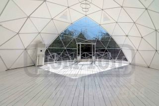 ШАТЕР: Купольный белоснежный шатер с панорамными окнами и прозрачной крышей на 70 персон. Уникальный купол высотой 6 метров оборудован системой отопления.