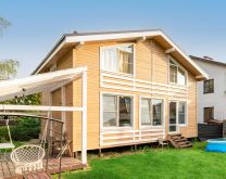 Новый деревянный дом с баней у озера. Уютное трансформируемое пространство из натурального дерева с панорамными окнами, наполненное красотой природы и пронизанное солнечным светом.