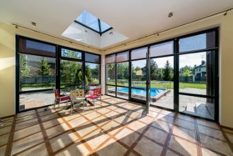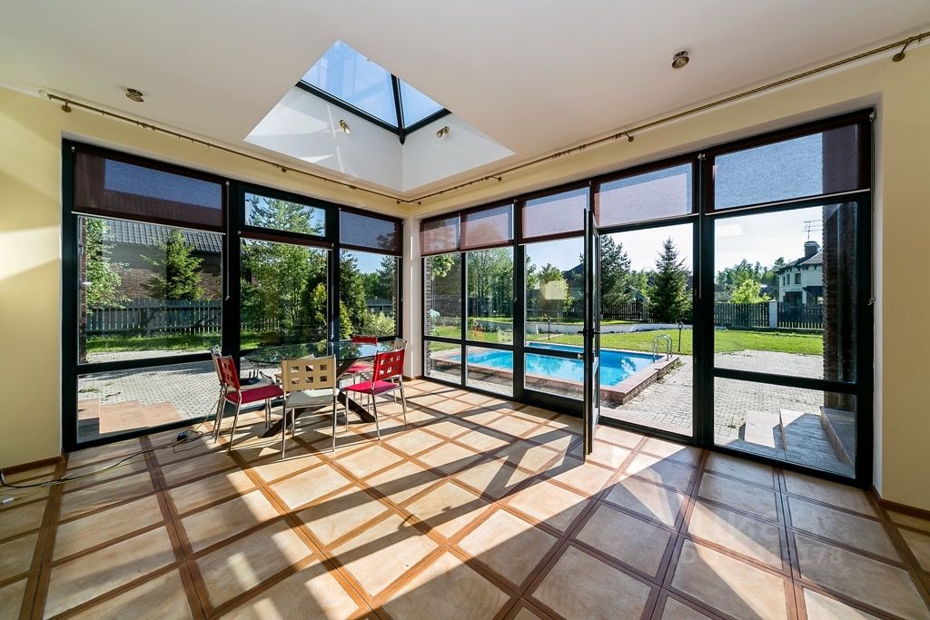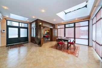 Можно проводить шумные мероприятия в большой гостиной зоне со вторым светом и при этом не мешать тем, кто хочет отдохнуть и уединиться в отделенной от гостиной зимним садом части дома где располагаются оборудованная кухня, стловая, спальни и комната отдыха с сауной.