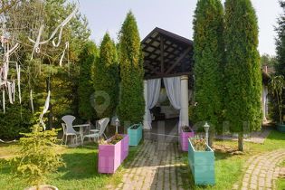 * На территории: уютная беседка с мангалом для барбекю на свежем воздухе, а также площадки для волейбола и баскетбола.