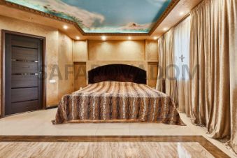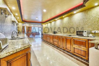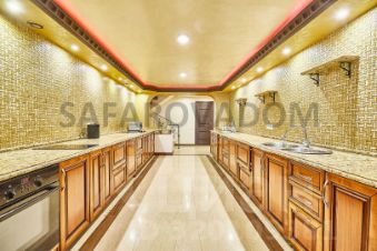 В доме площадью 560 кв.м в вашем распоряжении: две гостиных, одна гостиная с выходом в бассейн, кухня, столовая, бильярдная, хаммам, 6 спален, комната отдыха с домашним кинотеатром, санузлы.