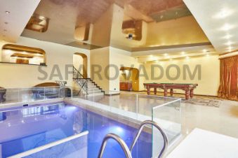дается в аренду посуточно 4-уровневый коттедж с теплым бассейном ( 3*7 кв м и глубиной 2 метра , турецкой баней, хаммамом и бильярдом .
