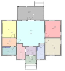 В доме каждая жилая комната имеет по 2 окна, выходящие на 2 стороны дома, т.е. естественное освещение присутствует большую часть времени суток.