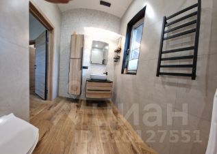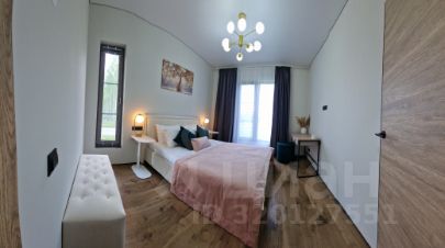 В одном крыле дома находится главная спальня с широкой двуспальной кроватью, гардеробная, приватный санузел с ванной.