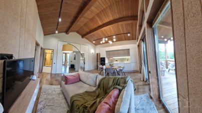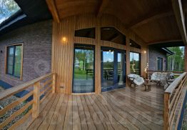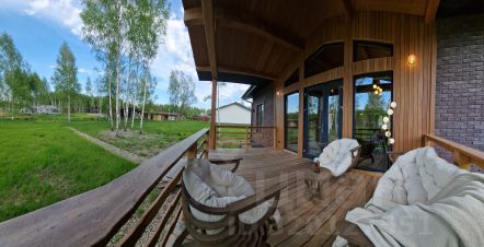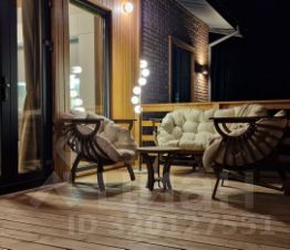 Из гостиной выход на террасу с дизайнерской садовой мебелью. Терраса расположена так, что вы, находясь в мягких объятьях подушек, не будете страдать летом от жары, а в другие сезоны от ветра. Вечера под тёплым пледом и горячими напитками на свежем воздухе оставляют особенно приятные впечатления надолго.
