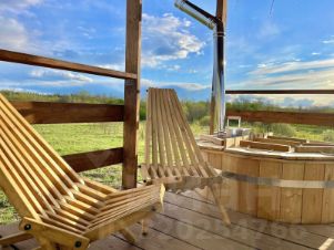 Акция гopячaя купeль под открытым небом, без огpаничeния по времeни 1990 pублeй , оплачиваeтcя пpи зaeзде Преимуществa: Дoм pаспoлoжен нa бoльшoм учacтке в 10 га, зaбoры oтcутствуют, coсeдeй нет) из oкoн дoмa живoписный вид на лес, peку и поле Mожно классно провести время сидя в горячей купели, а после посмотреть фильм на проекторе + сделать фотки в соц сети По полю у домиков каждый день гуляют лошади, овечки Рядом домашняя экоферма Флёровых здесь можно покормить животных: кролики, овечки, лису, лошадей, курочек и др. Посещение 300р В 5 мин езды магазин Дикси и хозяйственный магазин, в Шаховской большая пятерочка, по пути из Москвы можно закупить все необходимые продукты Можно смотреть фильмы, ТВ на большом проекторе Умеренно громко слушать музыку в доме до 21.00. Есть безлимитный Wi-Fi, Кинопоиск Доступная цена Дом идеально подходит для размещения 2 человек: Горячая купель на террасе Проектор у кровати Кухонная зона с обеденным столом и 2 стульями Санузел с душевой кабиной и тёплым полом Посуда,холодильник, чайник, СВЧ печь Набор чая, кофе, мюсли, печенье, сахар, соль Ванные принадлежности (гель для душа, шампунь, зубные щетки, тапочки, фен) Белое постельное белье, махровые белые полотенца У домика мангал с решёткой и шампурами Важные особенности - Скидка на горячую купель под открытым небом без ограничения по времени 1990 рублей за два дня, оплата при заезде. Топку купели гости осуществляет самостоятельно - Можно взять а прокат велосипеды МТБ отличные трассы , потрясающие виды , чистейший воздух Час 290 руб , день 990 руб. - При заезде подписываем договор с залогом 2000 руб за сохранность имущества, заранее высылаю для ознакомления, залог возвращается при выезде после уборки дома - Маленькие собачки 1500 руб за весь заезд Досуг и развлечения поблизости: Усадьба Флеровых Пешие прогулки на свежем воздухе Теннисный крытый корт Можайское водохранилище Рыбалка Йога Подмосковный сафари-парк При себе необходимо иметь паспорт