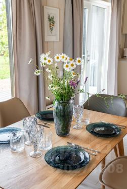 Кухня: индукционная плита, посудомоечная машина, СВЧ-печь, холодильник, электрический чайник. Посуда и приборы на 6 персон.