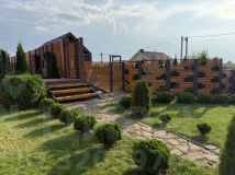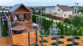 Площадь участка рядом с домом - 3 сотки (можно пользоваться общей территорией участка 10 соток, где располагается детский комплекс, газоны для прогулок и игр).