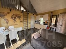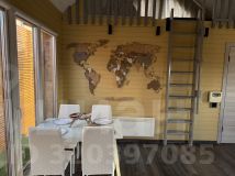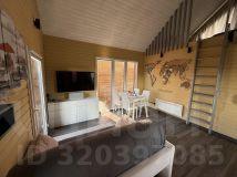 На первом этаже дома расположена входная зона с шкафом, полностью оборудованная кухня, зона ТВ с тумбами для хранения, раскладной двуспальный диван (120см шириной).