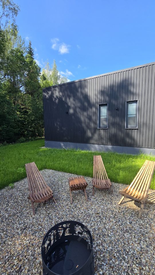 • Одна спальня и кухня-гостиная с выходом на террасу с видом на лес.