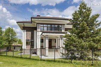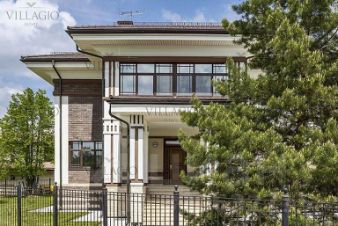 Особенности дома — большая площадь остекления, каминный зал с выходом на террасу, кабинет/спальная на первом этаже, большие гардеробные и санузлы. Интерьеры выполнены под ключ.