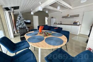 Внутри:• 3 изолированные спальни• Кухня-гостиная с большим раскладным диваном• Санузел с ванной• Камин• Просторная терраса• Современная техника, стильная мебель и продуманная эргономика• Полный комплект посуды• Чистое постельное бельё, свежие полотенца, базовые средства гигиены• Тёплые полы в ванной