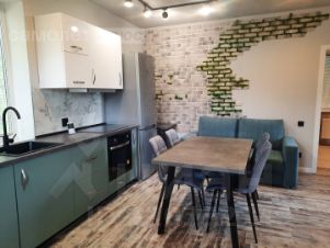 Имеется необходимая мебель и бытовая техника: телевизор, холодильник, электрическая варочная панель, духовой шкаф, микроволновая печь, чайник электрический, вытяжка, посудомоечная машина и стиральная машина.