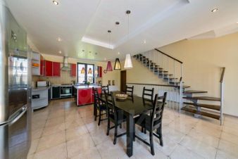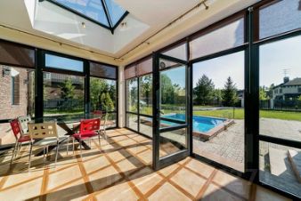 Можно проводить шумные мероприятия в большой гостиной зоне со вторым светом и при этом не мешать тем, кто хочет отдохнуть и уединиться в отделенной от гостиной зимним садом части дома где располагаются оборудованная кухня, стловая, спальни и комната отдыха с сауной.