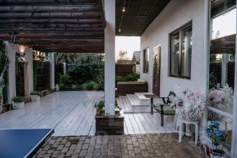 Придомовая терраса с lounge - зоной, барбекю, шезлонгами. Парковка на 4 машиноместа.