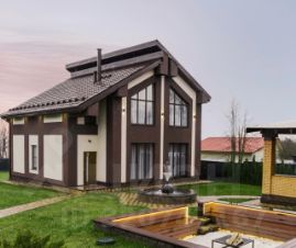 Стильный коттедж в стиле альпийского шале с русской баней 4 квартала 2023 года постройки на участке 15 соток.