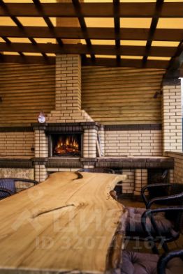 В беседке: каменная печь, столешница, место для казана на огне, стол из массива ручной работы, кресла из ротанга